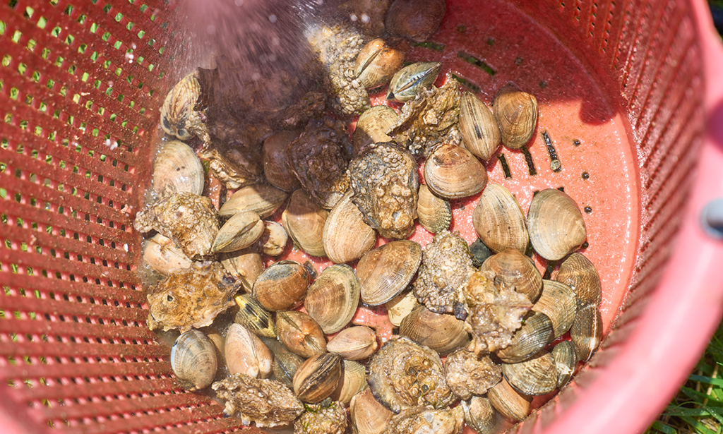 Recently, four Eddie Bauer associates discovered the outdoor joy of clam and oyster harvesting on an afternoon outing hosted by The Field Trip Society to Sound Fresh Oysters and Clams. Renowned Chef, Langdon Cook shared a few recipes from his book, Fat of the Land, to enjoy these amazing clams!