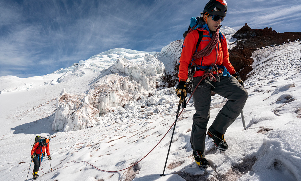 Watch our new VR/360 Experience mountaineering film, and follow Eddie Bauer alpine guides Carla Perez and Topo Mena as they lead you to the top of Ecuador’s Antisana. You’ll experience firsthand the excitement of hiking on a glacier, traversing a deep crevasse, and sleeping under the unparalleled beauty of a high-altitude night sky—culminated by the thrill of standing on Antisana’s windswept summit!