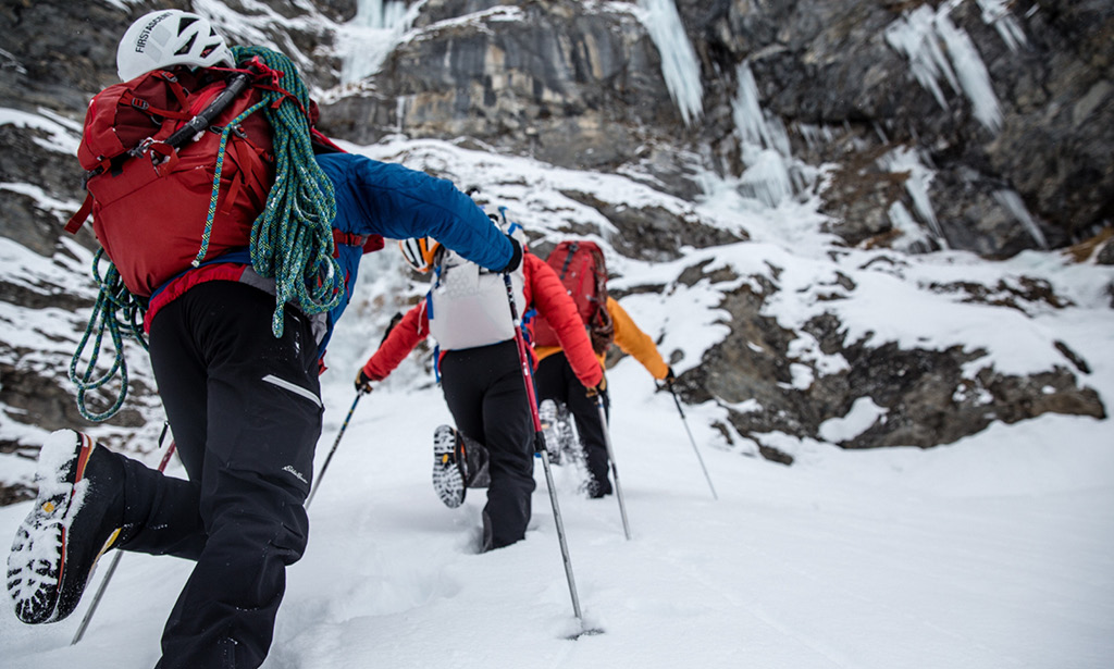 For more than a decade, Caroline George has lived for the vertical dimension, tackling some of the hardest ice and mixed routes. Raised by climbing parents, George followed in their footsteps by sharpening her skills in the Swiss Alps, then earned her guiding certs in the male-dominated ranks in a profession steeped in alpine tradition. A true working guide, she has also participated in an impressive tick list of climbing expeditions that have taken her from Mt. Vinson, Antarctica, to the deeply carved fjords of Norway.